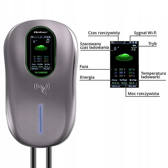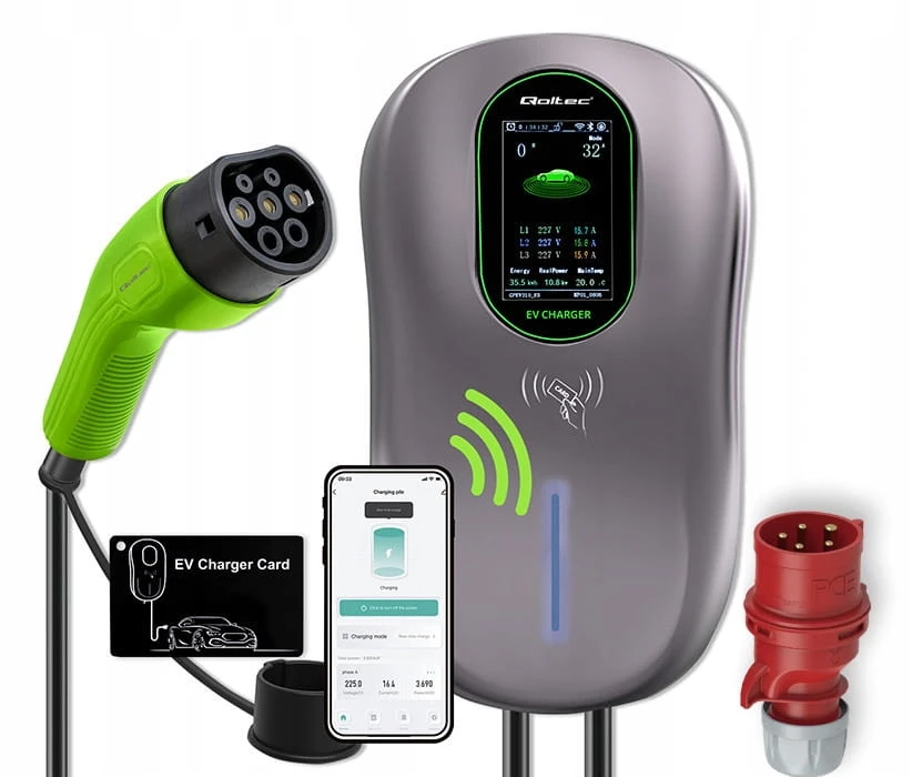 Qoltec 22kW to nowoczesna, 3-fazowa stacja ładowania typu Wallbox, zaprojektowana z myślą o użytkownikach samochodów elektrycznych (EV) oraz hybryd typu Plug-in (PHEV). Urządzenie łączy w sobie wysoką moc ładowania z inteligentnymi funkcjami zarządzania, oferując standard złącza Typu 2, który jest powszechnie obowiązującą normą w Unii Europejskiej. Wyposażona w czytelny wyświetlacz LCD oraz moduł Wi-Fi, stacja zapewnia pełną kontrolę nad procesem uzupełniania energii w pojeździe.