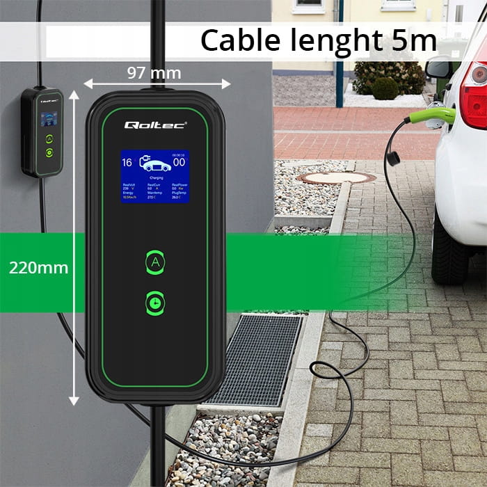 Qoltec Mobilna ładowarka EV 2w1 3,7 kW (Typ 2, 5 m, Wi-Fi, LCD) to inteligentne, bezpieczne i wyjątkowo praktyczne rozwiązanie do jednofazowego ładowania samochodów elektrycznych i hybryd plug-in.