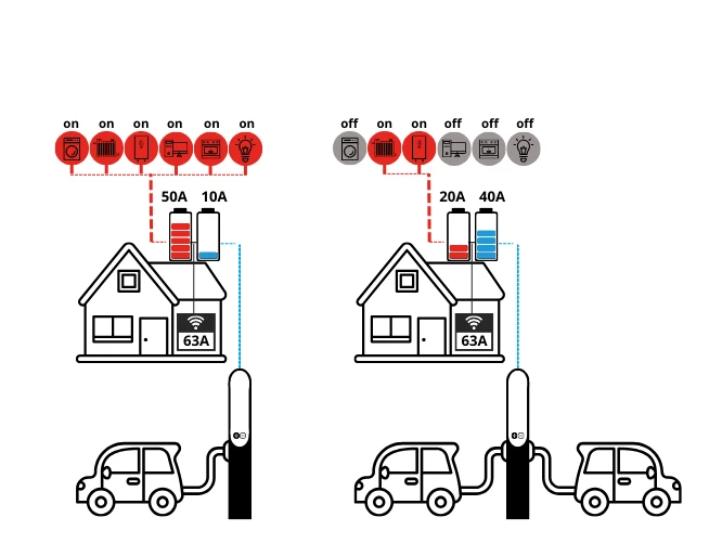 Smart Load Balance – inteligentne zarządzanie mocą ładowania w trzech trybach działania (Normal / Eco / BOOST), pozwalające efektywnie wykorzystywać dostępną energię oraz np. nadwyżki z instalacji PV.